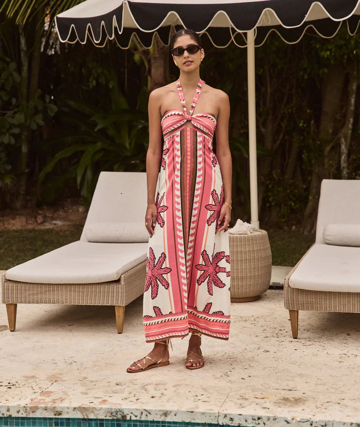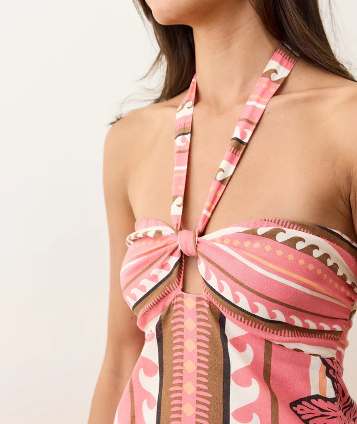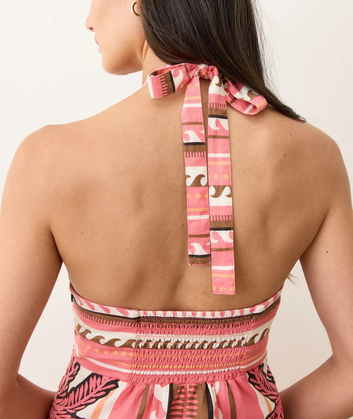 A nod to the ‘70s, all dialed up for summer. This halter neck midi dress is the ultimate poolside piece. Featuring a bold, exploded palm print, it's made from hemp for that perfect laid-back feel. Lined for coverage, it’s ready for sandals, a cocktail, and whatever your version of summer escape looks like.