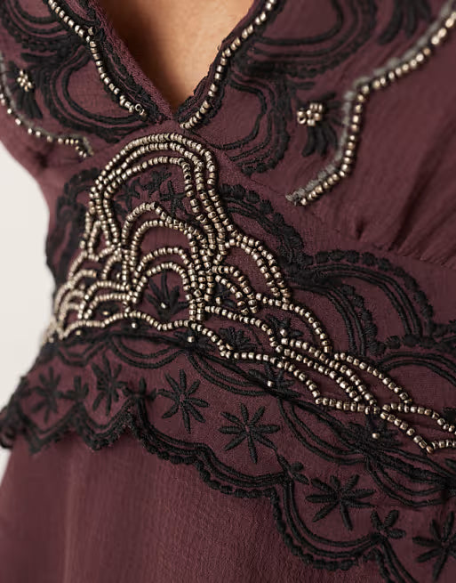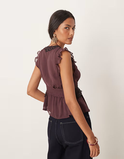Intricate embroidery and beading adds gorgeous detail to this frill trimmed tank finished with a flouncy peplum.