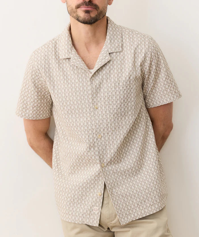 A one-of-a-kind blend of cotton and kapok—a type of fiber that requires less water to grow than cotton, but is just as soft. Fun story: we got this fabric and liked the look of the back side more, so we flipped it over and made these shirts inside out. You'd never know...if we didn't just tell you.